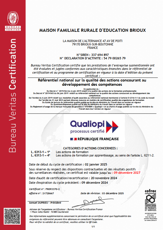 La MFR-CFA de Brioux-sur-Boutonne est un établissement scolaire géré par une association Loi 1901 à laquelle adhèrent toutes les familles. L’association a pour objectif de concourir à l’éducation, à la formation par alternance de jeunes et adultes, à leur insertion professionnelle et par là-même à favoriser le développement du territoire dans lequel la MFR est implantée.